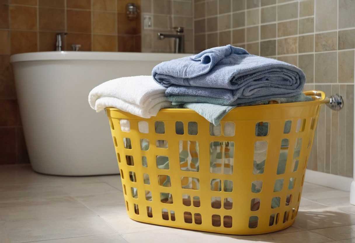 L’intégration d’un panier à linge dans l’espace salle de bain ne se résume pas seulement à une question de propreté et d’organistion ; il s’agit d’une invite discrète à insuffler du plaisir dans les tâches quotidiennes. Ainsi, avec un peu d’ingéniosité, la corvée de tri du linge devient un moment d’apprentissage et de jeu, en particulier pour les enfants. L’École à la Maison souligne les bienfaits éducatifs de ces activités simples : trier par couleur ou motifs, créer des paires de chaussettes, et même classer les vêtements selon leur type ou tailles pour encourager le développement du langage et de la motricité fine. Un panier à linge devient ainsi, outre son utilité, un outil pédagogique capital dans la salle de bain.